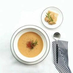 Die Serie á Table Ligne Noire von ASA Selection umfasst Geschirr aus feinstem, weißen Porzellan, das am Rand schwarz kontuiert ist. Die schwarze Linie wird grazil in Handarbeit aufgetragen. Durch eben diese schwarze Umrandung setzt das Porzellan Akzente auf jeder Tafel und verleiht den drauf angerichteten Speisen besonderen Ausdruck. In dem tiefen Teller werden schmackhafte Suppen und frische Pasta appetitlich angerichtet.