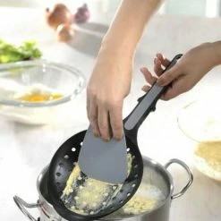 GEFU Spätzlelöffel und Schaber aus hygienischem Nylon-Material macht´s möglich. Geeignet für alle Topfgrößen von 18 bis 24 cm ist sicheres Arbeiten durch den Soft-Touchgriff und Fingerstopp garantiert. Der große, flexible Teigspatel des GEFU Spätzlelöffels ermöglicht eine restlose Teigverarbeitung. Nach Gebrauch können Sie den GEFU Spätzlelöffel einfach in der Spülmaschine reinigen und den Spachtel zur Aufbewahrung im Löffel fixieren.