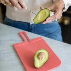 koziol faltbares Schneidebrett SNAP in coral. Das Schneidebrett mit praktischer Klappfunktion zum sicheren Schütten macht Schneiden, Kochen und Braten einfacher. Das Brett kommt in 2 Größen: in S besonders handlich für Kräuter, Zwiebeln und kleine Mengen Gemüse, bei der größeren Variante L rutschen an der mittigen Falz auch größere Stückchen Richtung Topf.