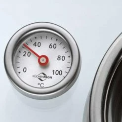 Der Aromabräter bzw. Dampfgarer von Küchenprofi verfügt über einen Aromaknopf im Deckel, den Sie mit bis zu 75 ml Wasser, Wein oder Sherry befüllen können. Über den Aromadeckel wird Ihr Bratgut regelmäßig mit der Flüssigkeit beträufelt und bleibt dadurch zart und saftig. Das neue Multitalent ist besonders vielseitig und kann zum Braten, Schmoren, Dünsten und Dämpfen eingesetzt werden. Der extra starke Mehrschichtboden leitet die Hitze optimal und erhitzt Braten, Rouladen und Gulasch gleichmäßig. Zum schonenden Dämpfen von Gemüse, Fisch und Geflügel nutzen Sie das Thermometer und den herausnehmbaren Gittereinsatz. Das vielseitige Kochgeschirr aus robustem Edelstahl ist für alle Herdarten, natürlich auch für Induktion geeignet. Der Aromabräter bzw. Dampfgarer lässt sich leicht säubern und ist spülmaschinenfest.
