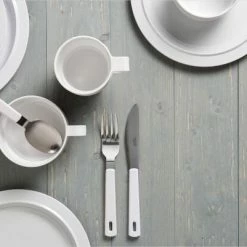 Weißer Suppenteller mit einem Durchmesser von 19,2 cm aus der Basic (Freizeit)Geschirr Serie von Mepal. Dieses Campingservice besteht schon mehr als 30 Jahre und ist inzwischen ein echter Klassiker geworden.