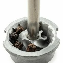 Ein Material der besonderen Art: Gusseisen. Wird es doch traditionell für die Herstellung von Teekannen verwendet, erfindet es sich nun im Bali Tempel der Gewürze neu. Auf dem Bambustablett in warmen Farbtönen stehen zwei prächtige Objekte aus schwarzem Gusseisen: Eine 8 cm große Pfeffermühle und ein Salzschälchen mit Deckel samt zierlichem Bambuslöffel, zur besseren Dosierung des Salzes.