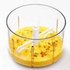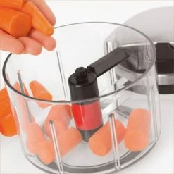 RÖSLE: Ob knackige Möhren, weiches Obst oder Kräuter – mit nur einem Zug machen die zwei Edelstahl-Klingen Großes klein und Grobes fein. Dank des komplett geschlossenen Behälters lassen sich auch scharfe Zwiebeln & Co. im nu ohne Tränen verarbeiten. Die Versteifungsrippen im Behälter sowie der Ab- und Aufweiser am Rotor garantieren eine gleichmäßige Verteilung des Inhalts in der Schüssel und sorgen so für ein optimales Schneideergebnis. Die Rutschsicherung am Boden und der ergonomische Griff ermöglichen ein sicheres Arbeiten.