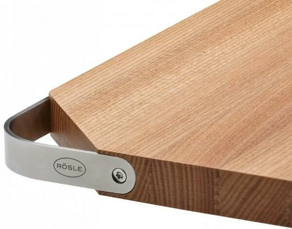 Rösle Schneidbrett mit Edelstahlgriff. Das Schneidbrett aus hochwertig verarbeitetem Ulmenholz eignet sich nicht nur hervorragend zum Zubereiten, sondern auch zum stilvollen Servieren von Speisen.