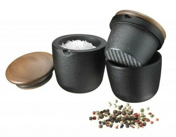 Skeppshult SalzbehÀlter Swing in walnuss. Die gusseiserne KrÀuter- und Salzschale mit einem Deckel aus edlem Walnussholz.