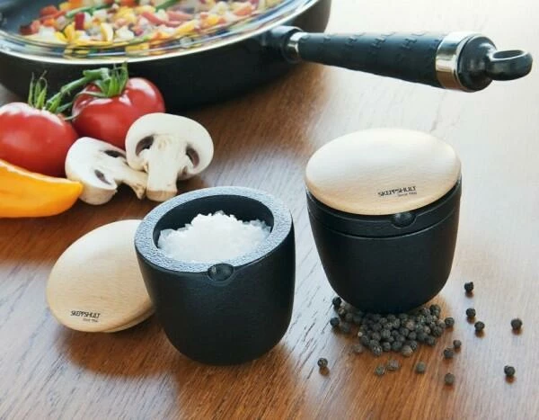 Skeppshult KrÀuter- und Salzschale ist aus reinem Gusseisen hergestellt und liegt aufgrund ihres runden Bodens und der Schwere des Materials gut in der Hand. In dem GefÀà können Salz und KrÀuter mit einem formschönen Holzdeckel verschlossen und aufbewahrt werden.