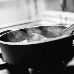 Skeppshult werden keinerlei Farben oder andere Chemikalien verwendet. Die Pfannen werden ab Werk mit Rapsöl eingebraten. Das verleiht den Pfannen eine schöne schwarze Farbe und bietet einen ersten Antihaftschutz. Ansonsten verfügen die Pfannen über keine weitere Beschichtung. Sie braten also auf purem Gusseisen. Vor dem ersten Gebrauch der Pfannen bedarf es keinerlei Vorbereitungen. Es empfiehlt sich lediglich ein kurzes Ausspülen mit heißem Wasser, um Staub und Produktionsrückstände zu entfernen.