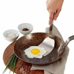 Die Laffe des hochflexiblen Wenders 1946 ist hauchdünn, aber dennoch stabil. So gleiten sie leicht unter empfindliche Speisen wie Spiegelei, Jakobsmuscheln oder feines Gebäck und heben und wenden ohne Bruchgefahr. Zur Serie 1946 gehören Küchenhelfer für jeden Tag, sämtlich neu durchdacht und einzigartig in ihrer Handhabung. Aus gebürstetem 18/10 Edelstahl und mit einer massiven Materialstärke sind sie unverwüstlich und bestreiten den rauen Gastronomiealltag ebenso souverän wie sie am Buffet und im Haushalt durch Ihre Formschönheit beeindrucken. Alle Teile der Serie wurden auf den Prüfstand gestellt und in ihrer Funktion optimiert. SuppenSaucenkelle gießen tropffrei, Wender und Löffel sind stark und ergonomisch und derSchaumlöffel sorgt durch große, eckige Löcher für perfektes und verstopffreies Ablaufen von Flüssigkeiten. Für beschichtete Pfannen gibt es den flexiblen Wender auch mit schonendem Nylon. „1946“ vereint triangles Kernwerte Qualität, Funktionalität und Nachhaltigkeit in Perfektion. Und so wäre auch Firmengründer Erwin Hill, der 1946 den Grundstein zu triangle legte, stolz auf diese Serie gewesen und hat so zu ihrem Namen inspiriert. Rostfrei und spülmaschinengeeignet.